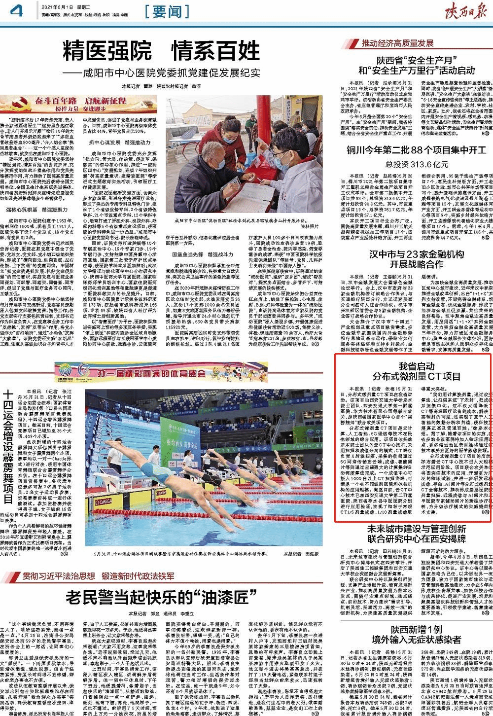 5月31日,分布式微剂量CT项目在我省启动。该项目由Beat365正版唯一官网必一徐宗本院士团队、Beat365正版唯一官网必一第一附属医院、华为技术有限公司等联合攻关,是陕西省国家医学中心首个“揭榜挂帅”联合攻关项目。