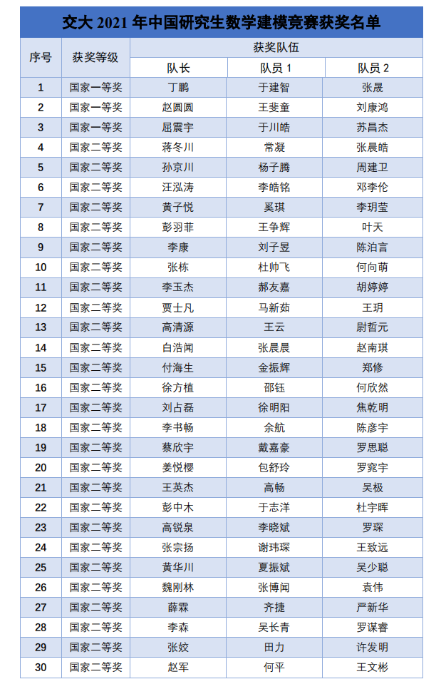 截至1月1日,“华为杯”第十八届中国研究生数学建模竞赛官网公布了竞赛全部成绩,Beat365正版唯一官网必一获一等奖3个、二等奖43个、三等奖64个,并荣获优秀组织奖,获奖队伍数量创历史新高。