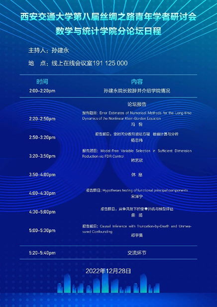 院长孙建永教授代表学院对六位青年学者参加此次数学分论坛表示热烈欢迎。对于暂时不能线下参会表示遗憾,并欢迎各位学者会后来交大线下交流。随后孙建永院长介绍了学校、学院的发展现状,以及数学和统计学科师资队伍建设等情况,并对青年才俊发出诚挚邀请,对他们加盟我院表示热烈欢迎和期待。