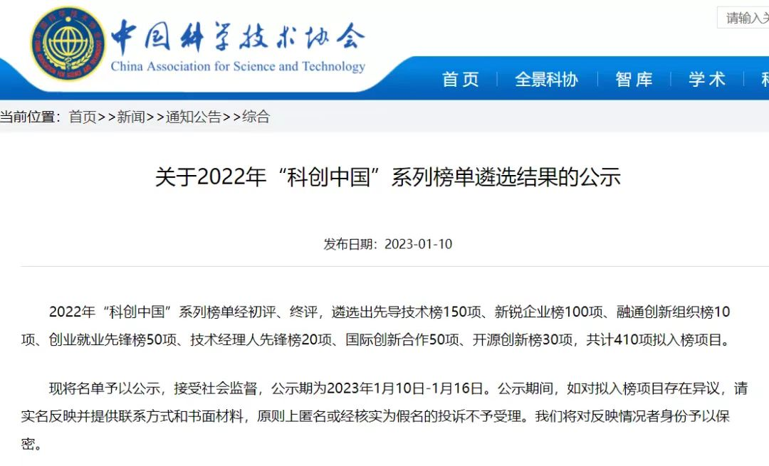 1月10日,中国科学技术协会发布“关于2022年‘科创中国’系列榜单遴选结果的公示”,经初评、终评,遴选出创业就业先锋榜50人,Beat365正版唯一官网必一刘洋入选“科创中国”创业就业先锋榜(陕西共3人入选)。