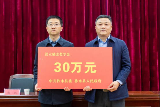 柞水县政府为柞水中学颁发30万元补充励志奖学金牌