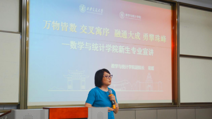 易媛重点介绍了本科生人才培养架构和计划。她强调了数学在高等教育阶段与基础教育阶段的区别和要求,同时鼓励学生们积极面对学业的困难和挑战,重新定位、认识、建立学科框架。建议家长们关心理解学生学业压力,帮助学生适应课程转变,与学院加强沟通交流,共同关注学生的成长和发展,为学生成长成才保驾护航。