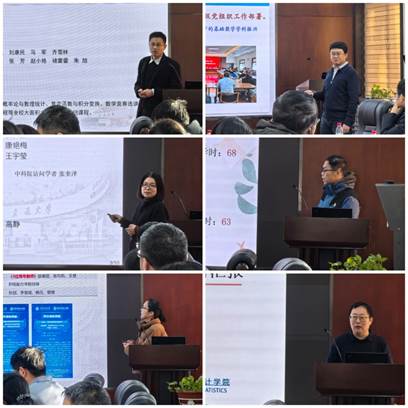 数学教学中心常务副主任郭士民全面总结了2024年度中心在推动本科大面积数学教学方面所做的工作及其取得荣誉和成果。数学系主任刘小川介绍了系所在推动基础数学发展方面所做的努力和成效,包括推动基础学科振兴计划、大力引进人才等。应用数学系主任李丽敏在全面总结系所年度工作的同时,也深入分析了系所面临的挑战和未来的努力方向。计算数学系主任李辉总结汇报了系所年度教学、科研、队伍建设和自身履职情况,明确下一步发展方向。信息科学系主任曾薇详细汇报了系所在今年在科研、教学、队伍建设、人才培养等方面的取得的显著成绩,并表示要凝聚师生合力,进一步推进系所发展。统计系主任孟德宇总结回顾了本年度系所开展的重点工作,并表示将进一步发挥统计学科优势,汇聚更多人才,推动统计系发展再上新台阶。