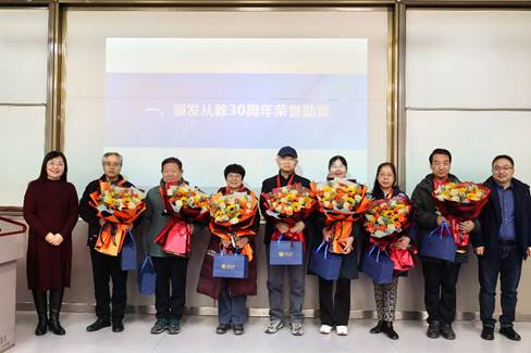 首先,学院表彰了从教三十年以上的老师,感谢老师们几十年来对教育事业的无私奉献,对学校、学院的事业发展的辛勤付出。颜莉书记、孙建永院长为老师们颁发纪念章,并赠送鲜花和纪念品,向所有从教三十年的老师们表达最诚挚的敬意和最衷心的感谢。