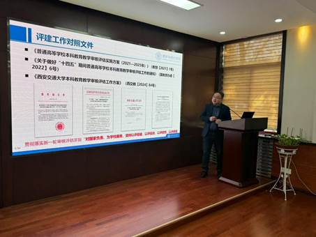 会议伊始,王秋旺处长介绍了本次到会的专家组成员,并系统阐释了本轮审核评估“以评促建、以评促改、以评促管、以评促强”的核心要义,重点解读了新一轮审核评估以习近平新时代中国特色社会主义思想为指导,落实教育“四个服务”,坚决破除“五唯”,扭转不科学的教育评价导向,落实立德树人根本任务,确保人才培养中心地位和本科教育教学核心地位的评估理念。