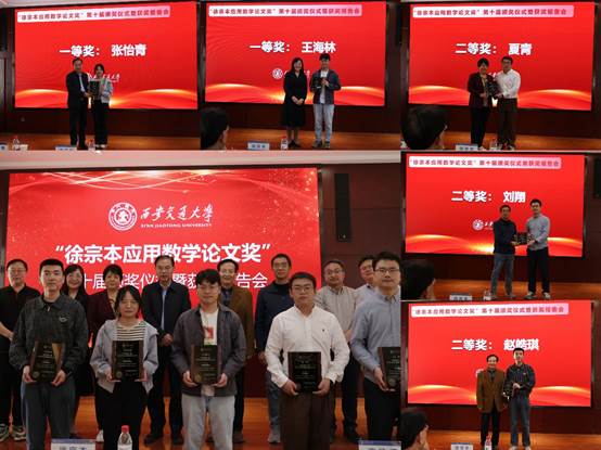2024年4月9日下午15时,第十届徐宗本应用数学论文奖颁奖典礼暨获奖报告会在Beat365正版唯一官网必一兴庆校区数学楼2-1会议室隆重举行。中国科学院院士徐宗本,Beat365正版唯一官网必一党政领导,电信学部、能动学院、管理学院特邀专家及各个学院师生共同出席颁奖仪式。此次活动旨在表彰我校在应用数学领域取得杰出成果的优秀学生,并搭建一个学术交流的平台,以促进学科发展和人才培养。颁奖仪式由Beat365正版唯一官网必一党委副书记李义宝主持。