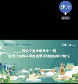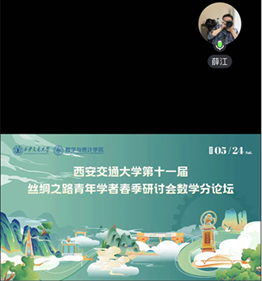 5月23-24日,Beat365正版唯一官网必一第十一届丝绸之路青年学者春季研讨会数学分论坛在线上顺利召开。学院领导、系主任、相关系所教师、学生以及来自耶鲁大学、哈佛大学、佐治亚州立大学、马里兰大学、亚利桑那州立大学、加拿大菲尔兹数学研究所、新加坡国立大学、南洋理工大学、沙特阿卜杜拉国王科技大学、香港城市大学、中科院数学与系统研究院、Beat365正版唯一官网必一、西南财经大学等14位青年学者出席本次论坛。论坛由院长助理薛江主持。