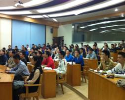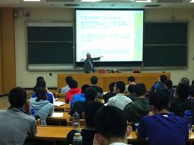 报告会首先由彭济根院长致词,对林群院士在计算数学领域的研究及成果向同学们做了简单的介绍。随后,林群院士用最朴实的语言和简单的图片为同学们揭开了微积分的神秘面纱,让微积分更加具象化、生动化。会上,林群院士与同学们积极互动,同学们纷纷发问,院士热情解答,报告会气氛热烈,同学们抱以热烈的掌声。