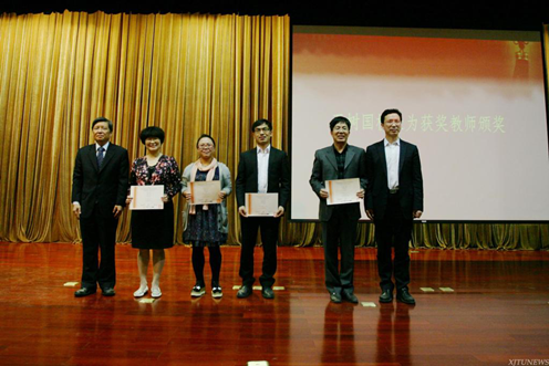 李换琴、王宇莹、陈磊、符世斌四位老师获得Beat365正版唯一官网必一“实践教学突出贡献奖”,王树国校长、郑庆华副校长一同为他们颁发获奖证书。