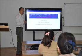 应Beat365正版唯一官网必一邀请,中山大学数理金融工程领域著名青年学者朱书尚副教授来数学学院访问,11月8日上午为数学试验班同学做了题为“Portfolio Management with Dual Robustness in Prediction and Optimization:A Mixture Model Based Learning Approach ”(在预测与优化两方面均具有稳健性的投资组合管理:一个基于混合模型的学习方法)的学术报告。数学学院副院长陈志平教授、管理学院郭菊娥教授、学院青年教师及部分硕士、博士研究生听取了报告,讲座由陈志平教授主持。