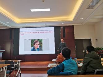 Nicolas Bedaride教授则向同学们介绍了Tiling of the plane。报告结束后同学们踊跃发言,对两位教授报告中的研究方向进行了激烈的探讨。两位教授对同学们关注的问题以及在相关领域中的关键文献等多方面给予了宝贵的建议。