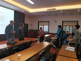 座谈结束之后,Pascal Hubert、 Nicolas Bedaride教授在高静副教授的陪同下开始对2020中法暑期学校国际交流项目报名的同学进行面试。参加此次面试的同学是目前数学试验班大一、大二的同学,共23人。面试中,两位法国教授从学习、生活、思维等各方面对学生进行了考核。