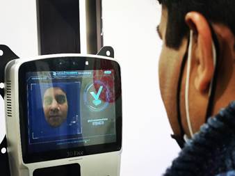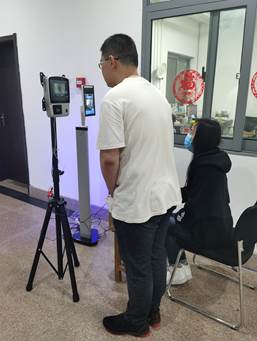 为保证同学们安全有序地在教研室进行科研学习,李慧斌副教授为学院捐赠了自主研发的A.l智能人脸识别测温防疫系统,可进行自助测温,有助于降低交叉感染风险,发现体温异常能够进行预警提示,同时,能够识别人员身份,确保进出入人员流动登记到位。学生们在门卫人员的引导下进行有序测量,有效落实疫情防控常态化要求,保证了师生返校复课工作的安全。