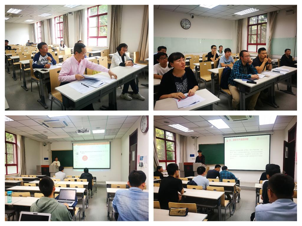 数试71高林溥汇报了自己在阅读《A First Course in Harmonic Analysis》著作后根据自己的理解用抽象调和分析的语言重新叙述了古典傅里叶分析的理论,完成了题为《现代调和分析基础》的报告;数试71王焰宇同学在阅读康威的知名著作《A Course in Operator Theory》后,重新梳理了盖尔福德关于交换Banach代数与其极大理想空间上的连续函数同构的基本理论,并对由单个正规算子所生成的C*代数和冯诺伊曼代数的结构进行了分类;数试81李知行同学向大家介绍了菲尔兹奖得主Jones的工作,核心内容为如何求一个扭结的琼斯多项式,以及他的若干性质和在当今数学、物理中的众多应用;数试81张笑言同学阅读了几何群论领域的相关文献,阐述了对于群的凯莱图和拟等距以及双曲空间的概念、性质和联系……指导教师对68名同学的选题、汇报一一点评,并在对指导专业知识学习的同时,对学生的学习态度、发展目标、刻苦努力、责任担当等成长成才方面积极引导,为后续小课题研究、毕业设计、人格养成等工作开展奠定基础。