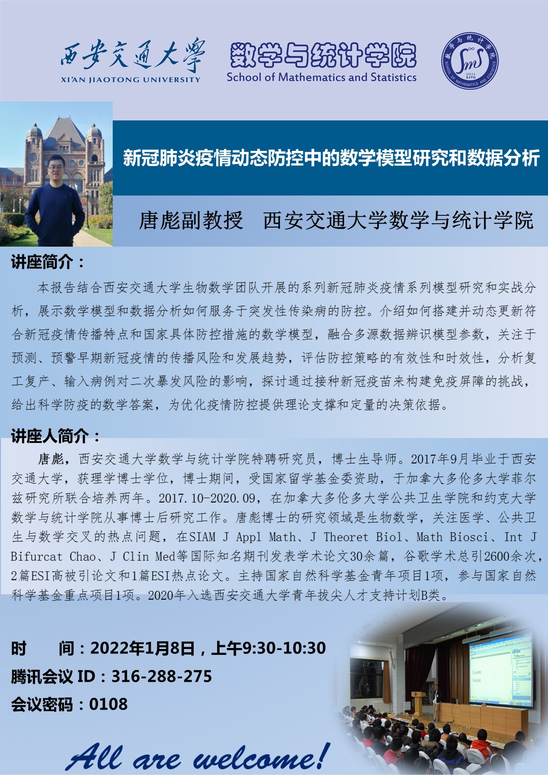 【新冠肺炎疫情动态防控中的数学模型研究和数据分析】学术讲座通知