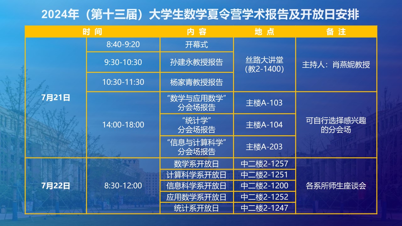 2024年大学生数学夏令营学术讲座及开放日安排