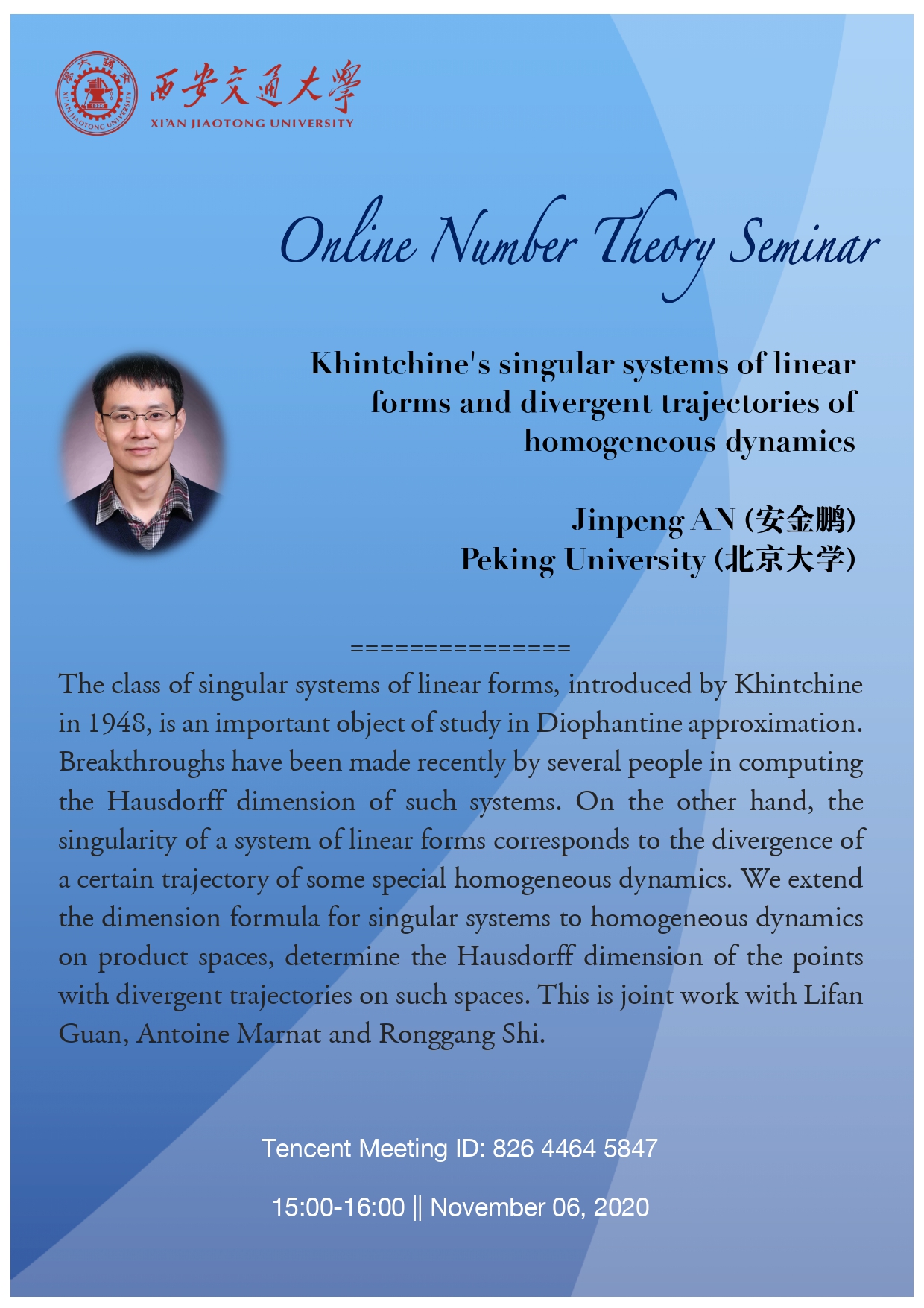 【数论讨论班】北京大学安金鹏教授 (2020.11.06)