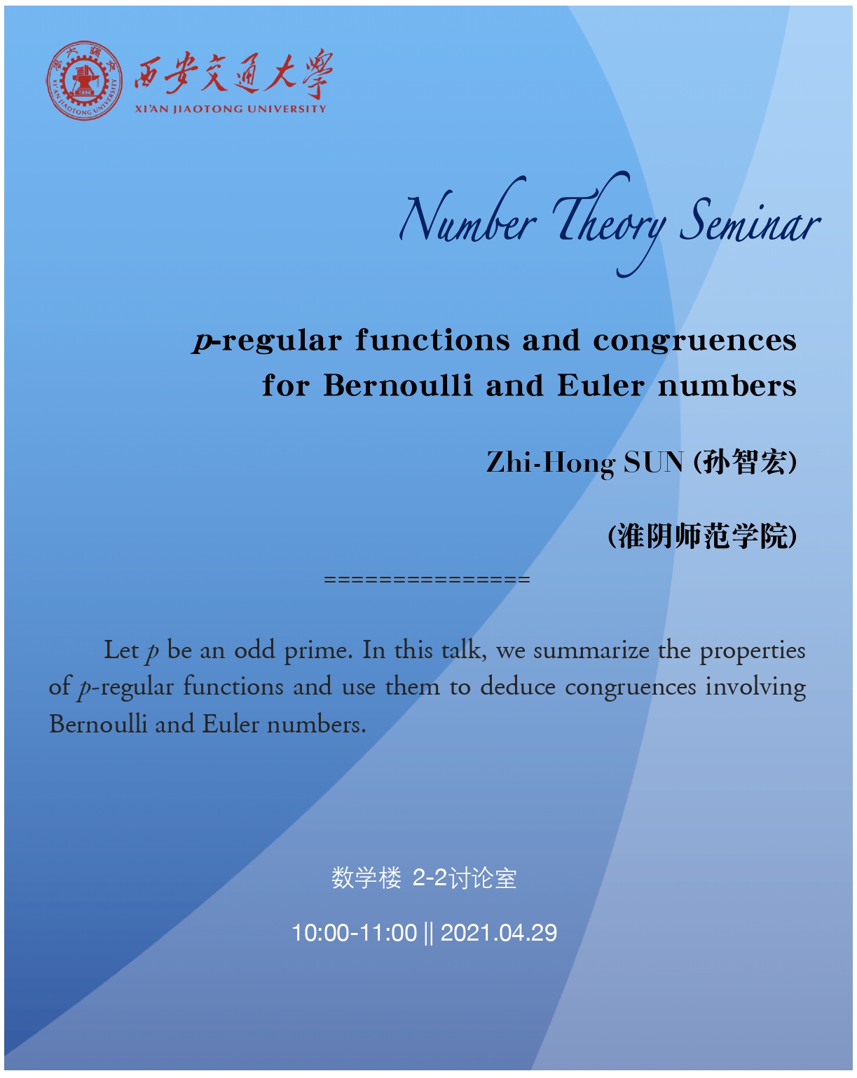 【数论讨论班】淮阴师范学院孙智宏教授 (2021.04.29)