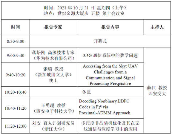 研讨班不收取任何费用,从事通信、人工智能相关的应用数学交叉领域青年学者及在校研究生可通过线上参会。为便于统计参会人员信息,请有意参加的学者通过链接或扫描二维码填写报名表并于10月19日前提交。填写后请按照日程安排在线参加或观看直播。