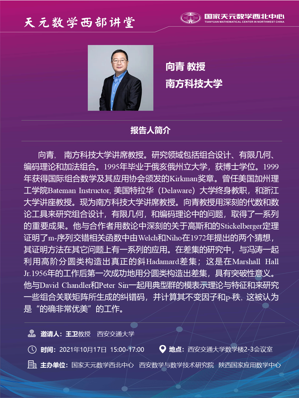 上一篇:【CSIAM青年学者论坛】【CSIAM大数据与人工智能专委会青年论坛】【西安统计与数据科学论坛】上海交...