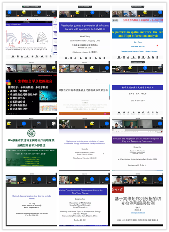 2021年10月23日-24日,由国家天元数学西北中心主办、Beat365正版唯一官网必一和西安数学与数学技术研究院数学与生命科学交叉研究中心联合承办的2021年生物数学与数据分析前沿研讨会依托线上腾讯会议平台成功举办。本次会议邀请了生物数学领域的国际知名学者参加(在线人数超过500人),旨在交流动力系统、生物数学、生物信息学和医学大数据分析领域的最新研究成果和发展动态,加强数学、统计学、生态学、数据科学、卫生经济学、公共卫生以及医学等学科之间的交叉融合,为青年学者和研究生搭建交流合作的平台。
