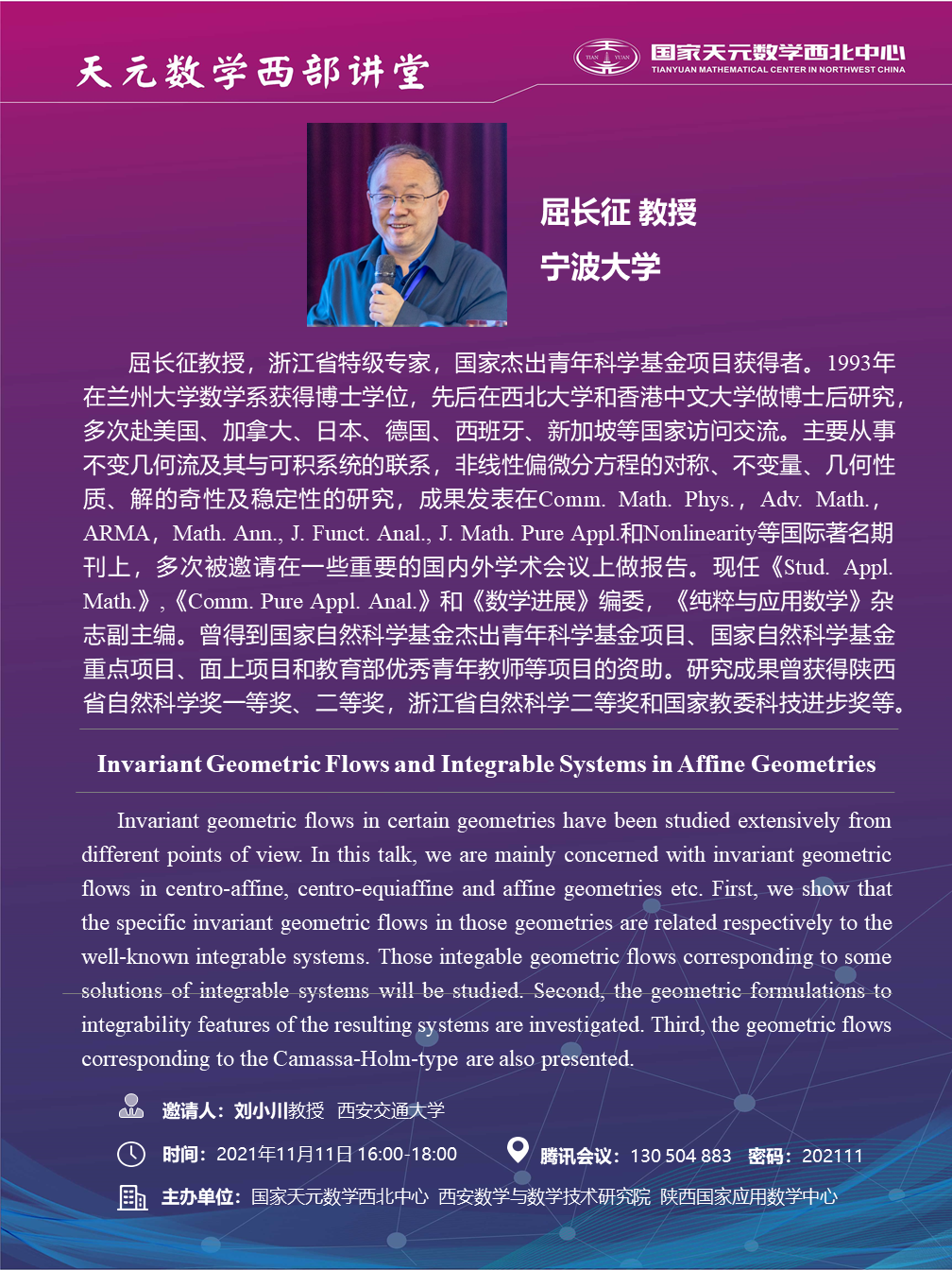 【天元数学西部讲堂】Invariant Geometric Flows and Integrable Systems in Affine Geometries