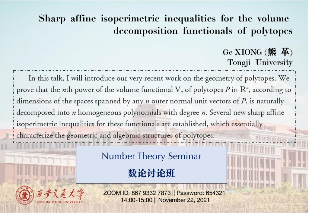 【数论讨论班】同济大学熊革 (2021.11.22)