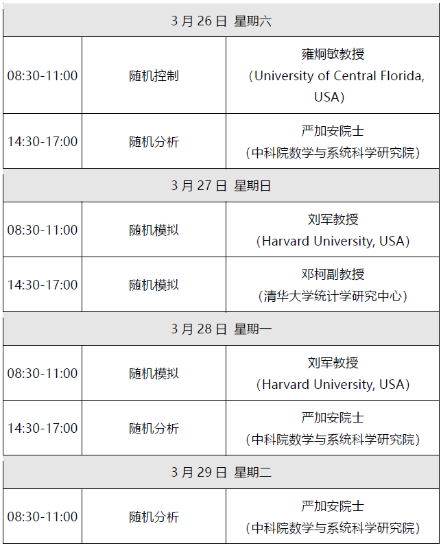 1. 讲习班不收取任何费用,计划招生人数150位。全国高等院校从事随机分析与量化金融相关领域的青年教授及在校研究生均可报名参加。