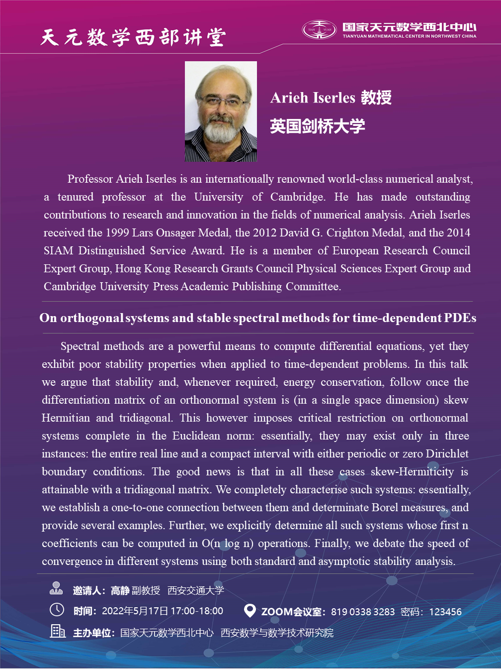 【天元数学西部讲堂】英国剑桥大学Arieh Iserles教授