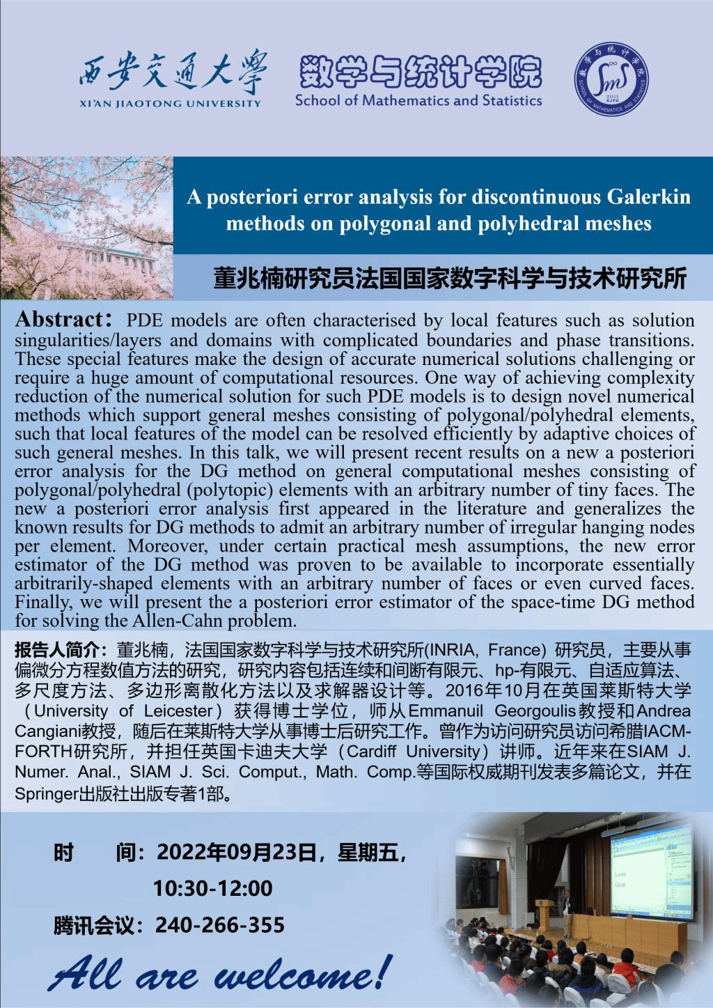 法国国家数字科学与技术研究所董兆楠研究员学术报告通知