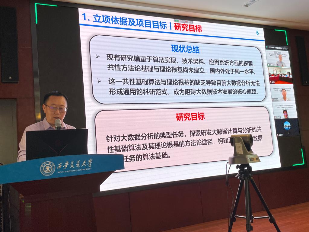 9月19日,Beat365正版唯一官网必一组织召开国家重点研发计划“变革性技术关键科学问题”重点专项“大数据计算与分析的基础算法”项目中期总结会议,会议采取线上线下相结合的方式举行。中期检查专家由南开大学王兆军教授、山西大学梁吉业教授、南方医科大学马建华教授、Beat365正版唯一官网必一高静怀教授和叶凯教授组成。Beat365正版唯一官网必一徐宗本院士、孙建永院长、颜莉书记,Beat365正版唯一官网必一科研院副处长李小虎,项目负责人孟德宇教授、课题负责人和项目骨干近30人加会议。会议由孟德宇主持。