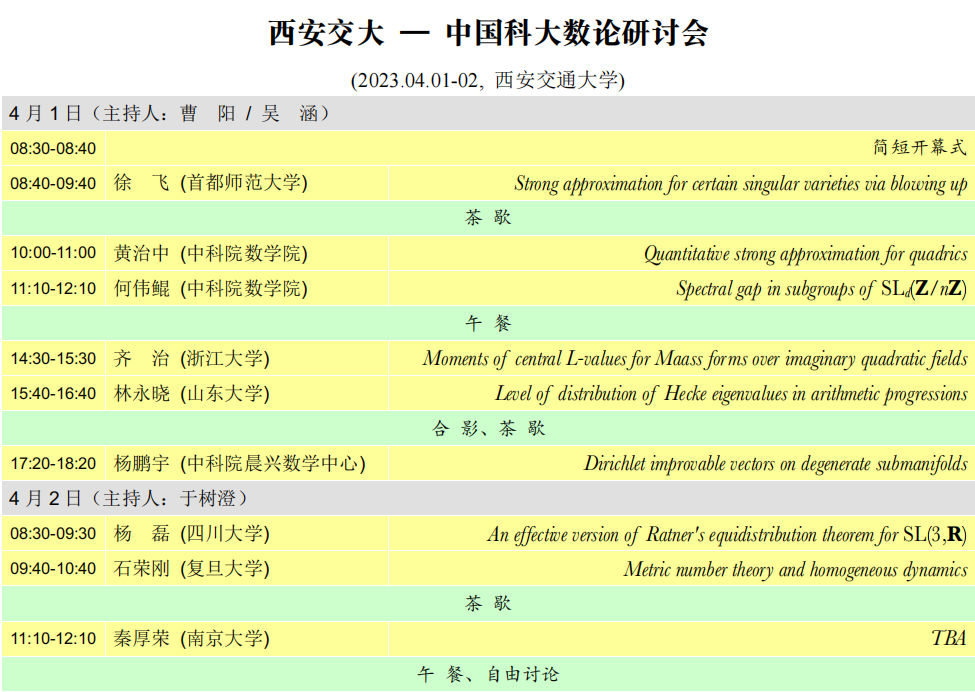 西安交大—中国科大数论研讨会(2023年4月1日-2日)