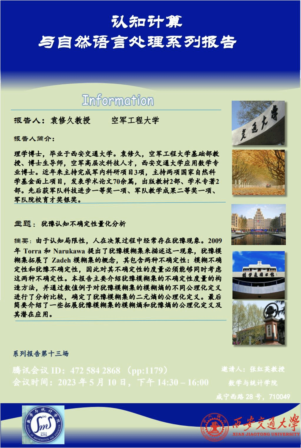 认知计算与自然语言处理系列报告 -----5.10日认知不确定性专场报告(第十二场、第十三场)