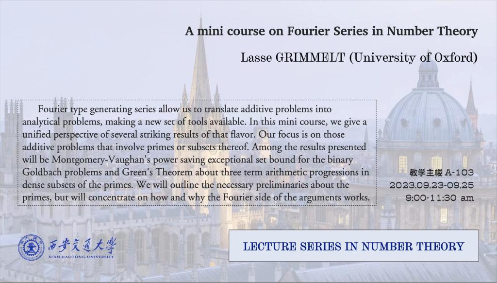 【数论短课程】 牛津大学Lasse Grimmelt (2023.09.23-25)