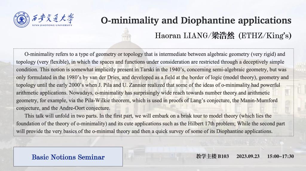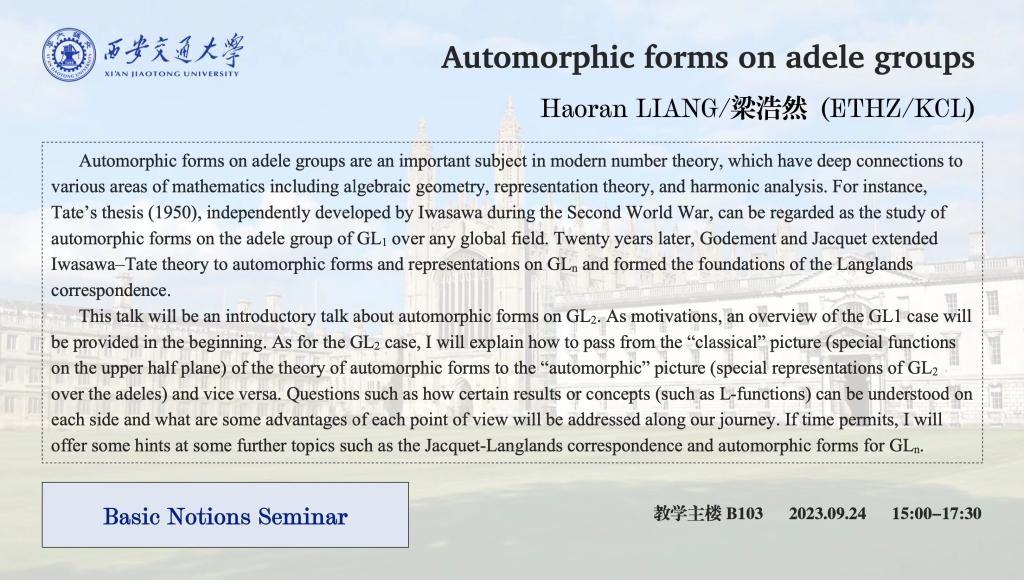 【数论讨论班】 苏黎世联邦理工学院梁浩然 (2023.09.23-24)