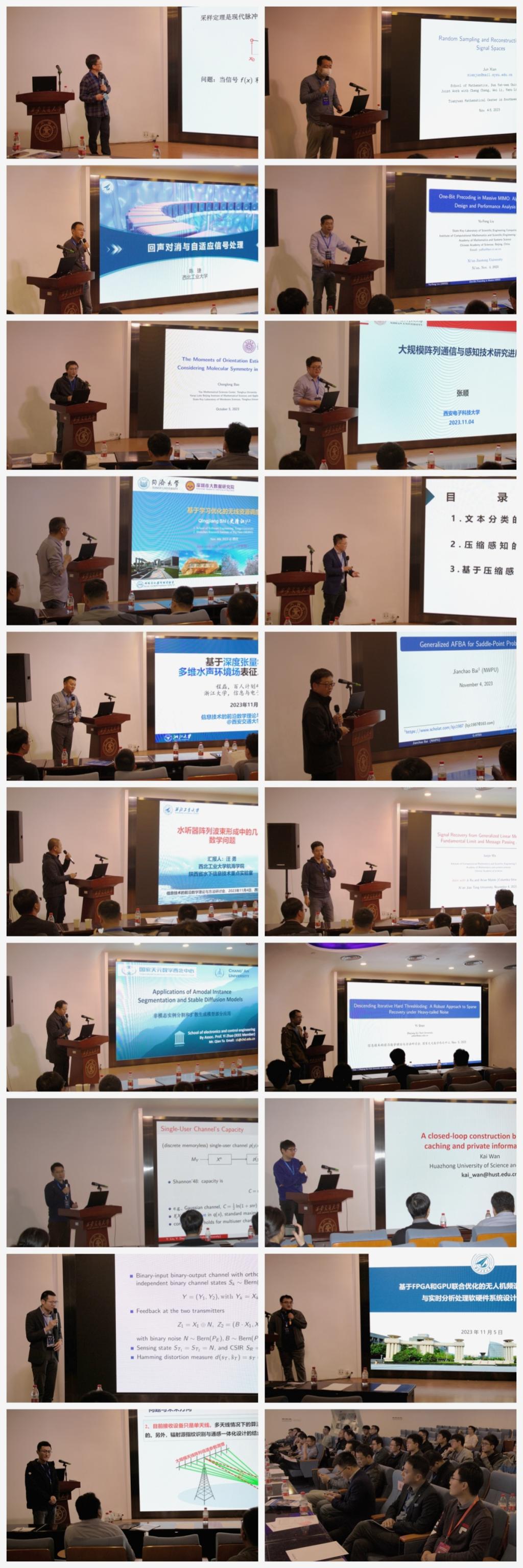 会议期间,各位专家和学者分享了各自专业在信息技术领域的突出成果以及经验心得,并与参会的学者以及学生深刻探讨和分析了数学理论与方法在信息技术领域的应用以及发展前景。内容包括 “信号空间中的随机采样与重构”、“基于压缩感知的新文本分析方法”、“下降迭代硬阈值:重尾噪声下稀疏恢复的鲁棒方法”、“基于深度张量学习的多维物理场表征、重建与生成”、“鞍点问题的广义AFBA研究”、“水听器阵列信号处理中的几个数学问题”、“广义线性测量的信号恢复:基本极限和消息传递算法”等等。参会人员认真聆听学习并与专家展开了深入的沟通,现场学术氛围浓烈。