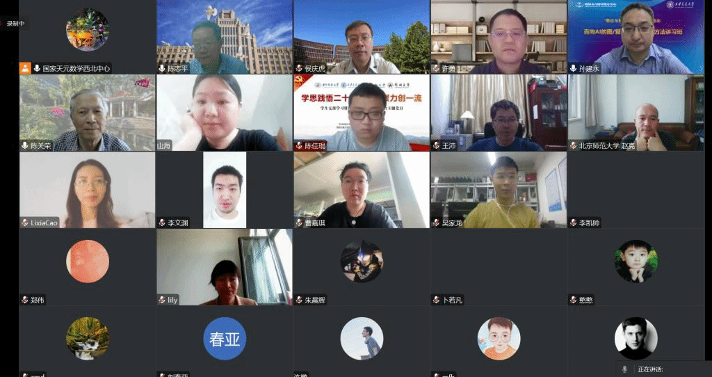 讲习班于线上腾讯会议平台举行,吸引了来自复旦大学、北京航空航天大学、华南理工大学、Beat365正版唯一官网必一、中国科学院大学、西安电子科技大学、西北工业大学、西北民族大学、科技战略咨询研究院、天津理工大学、宁夏大学、兰州交通大学、内蒙古工业大学等近50所高校和科研机构的百余位学者参加。Beat365正版唯一官网必一院长孙建永教授在开幕式上发表了致辞,鼓励参会人员充分利用学习机会,夯实基础、开阔视野。讲习班共计四天,涵盖20个学时,内容包括复杂网络、数学机械化和计算几何等方面的知识。