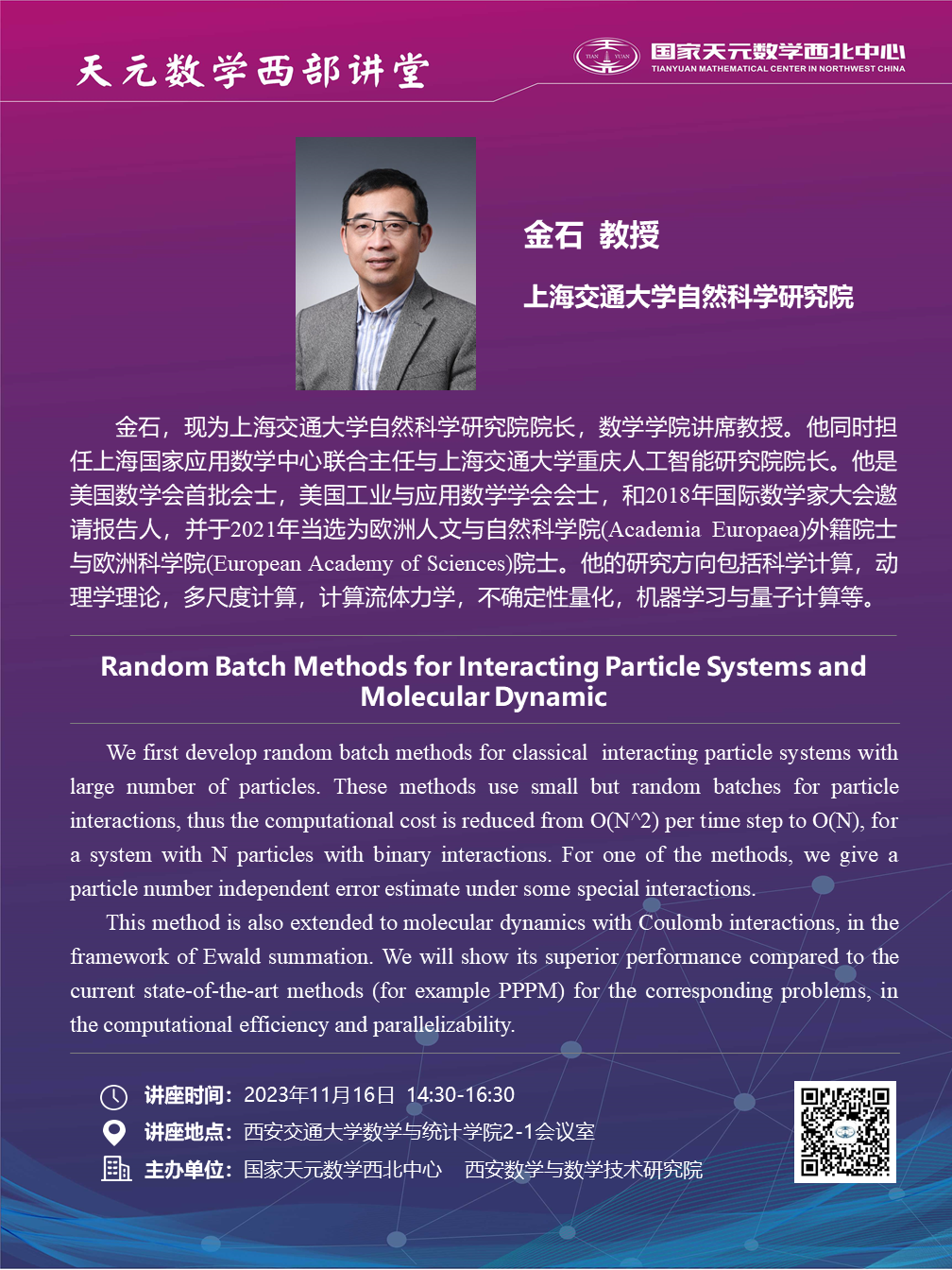 【天元数学西部讲堂】上海交通大学金石教授学术报告通知