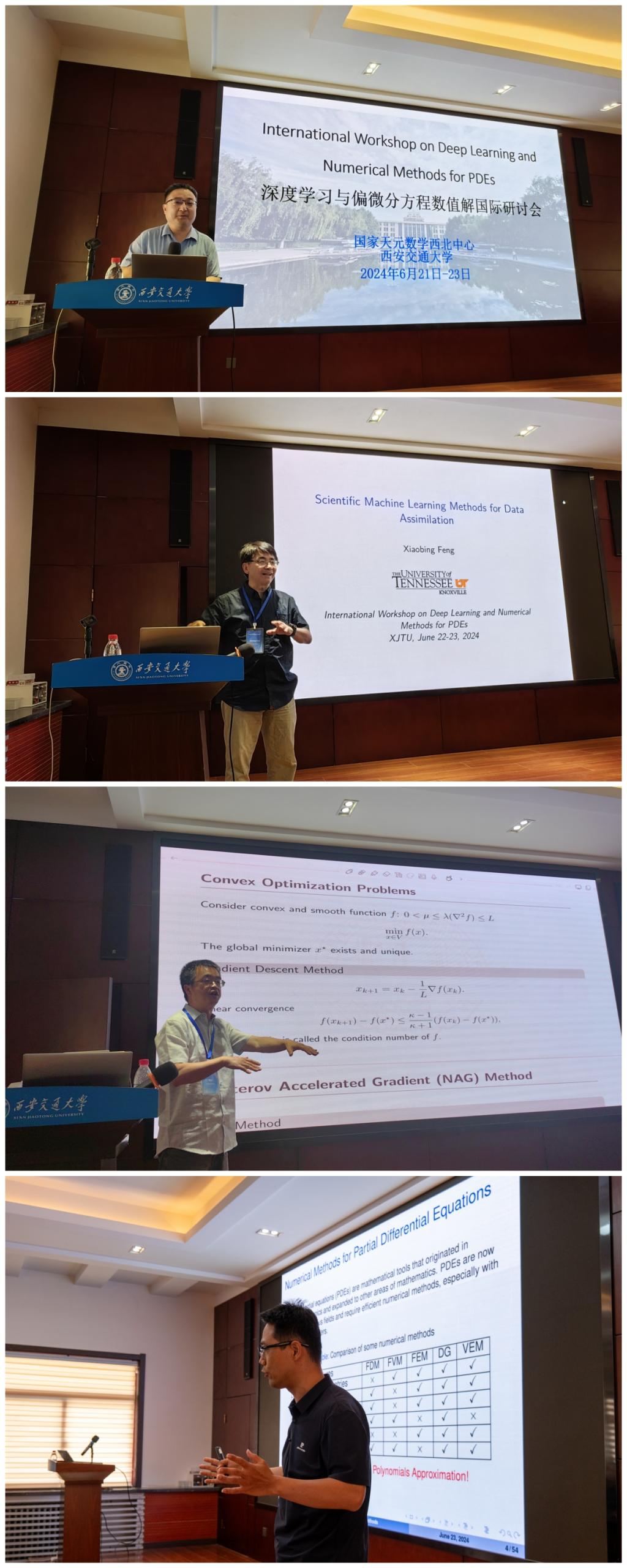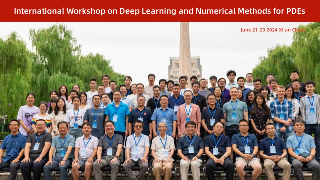 6月21日至23日,国家天元数学西北中心成功举办了“深度学习与偏微分方程数值解”国际研讨会(International Workshop on Deep Learning and Numerical Methods for PDEs)。会议聚焦于深度学习与偏微分方程数值方法的交叉与融合,以及其在科学与工程中的应用,由加州大学尔湾分校的陈龙教授、Beat365正版唯一官网必一的王飞教授和王治国教授共同组织召集。研讨会邀请了18位在本领域做出突出研究成果的专家学者作学术报告。来自美国加州大学尔湾分校、田纳西大学、普渡大学、南卡罗来纳大学、内华达大学拉斯维加斯分校、德克萨斯州立大学、摩根州立大学、德国马克斯-普朗克等离子物理研究所、荷兰代尔夫特理工大学、沙特阿拉伯阿卜杜拉国王科技大学、香港中文大学、中科院、上海交通大学、Beat365正版唯一官网必一、西北工业大学、吉林大学、中国核动力研究设计院、西北核技术研究院等30多个单位的近100名代表参会。