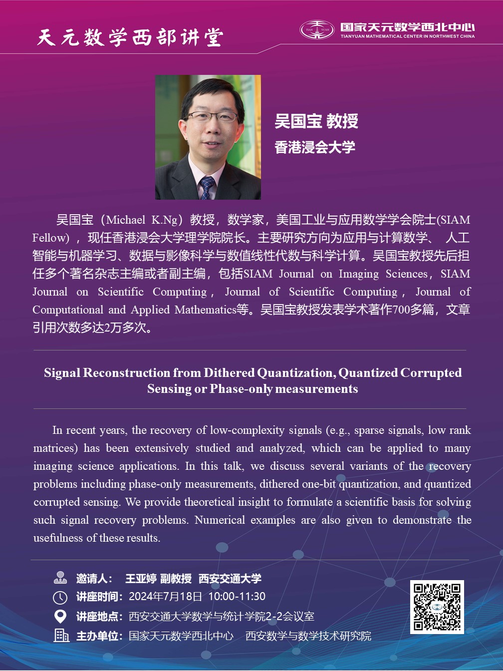 【天元数学西部讲堂】香港浸会大学吴国宝教授学术报告