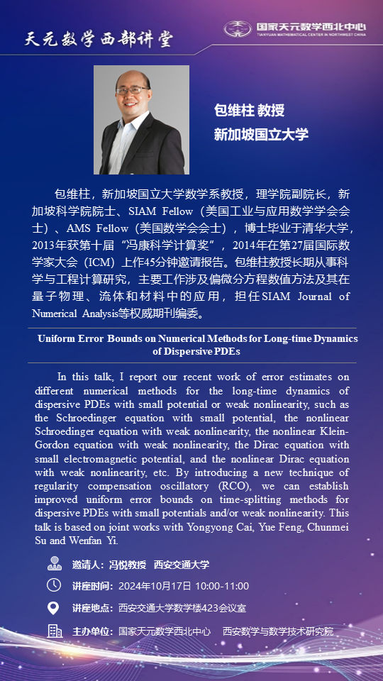 【天元数学西部讲堂】新加坡国立大学包维柱教授学术报告