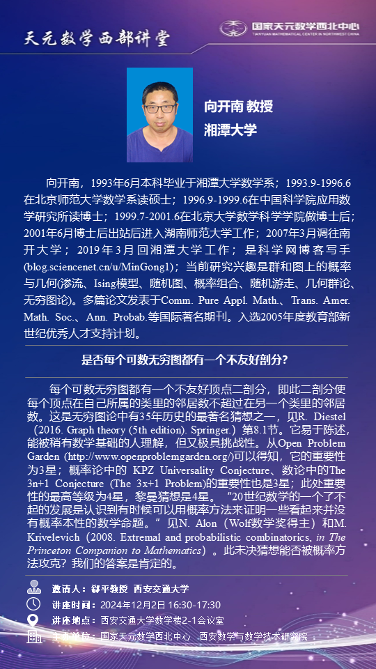 【天元数学西部讲堂】湘潭大学向开南教授学术报告