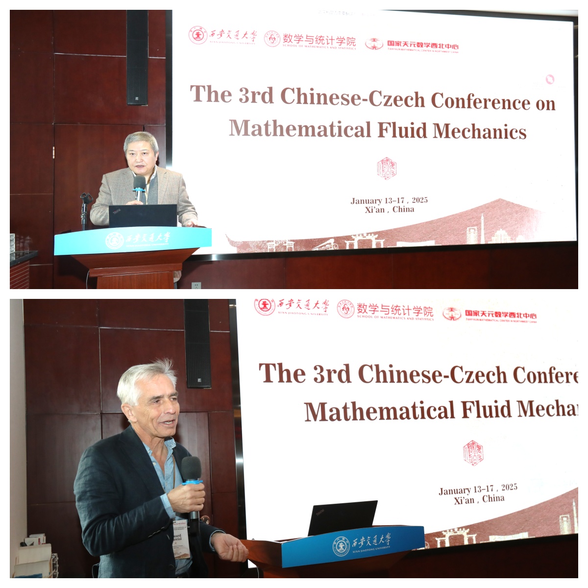 2025年1月13日至17日,由国家天元数学西北中心主办,Beat365正版唯一官网必一承办的“第三届中国-捷克数学流体力学会议”在陕西西安成功举行。本次会议由北京应用物理与计算数学研究所江松院士、捷克科学院Eduard Feireisl教授策划,中国科学院数学与系统科学研究院黄飞敏教授、首都师范大学李海梁教授、南京大学吕勇教授、首都师范大学佘邦伟教授、北京工业大学王术教授以及Beat365正版唯一官网必一张正策教授组织召集。会议吸引了来自捷克科学院、北京大学、上海交通大学,浙江大学、武汉大学、南京大学、吉林大学、香港中文大学,中国科学院数学与系统科学研究院等国内外知名高校和研究机构的60余位专家学者参与,共同讨论了他们在该领域的最新研究成果。
