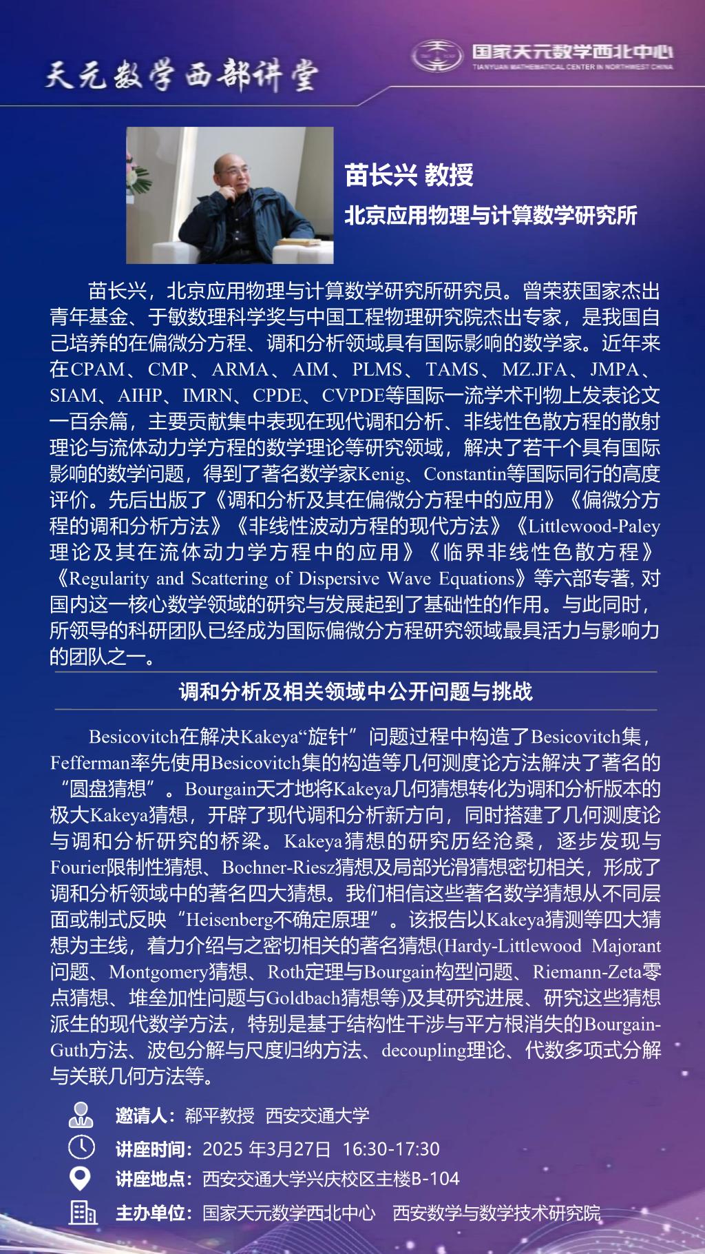 【天元数学西部讲堂】北京应用物理与计算数学研究所苗长兴教授学术报告
