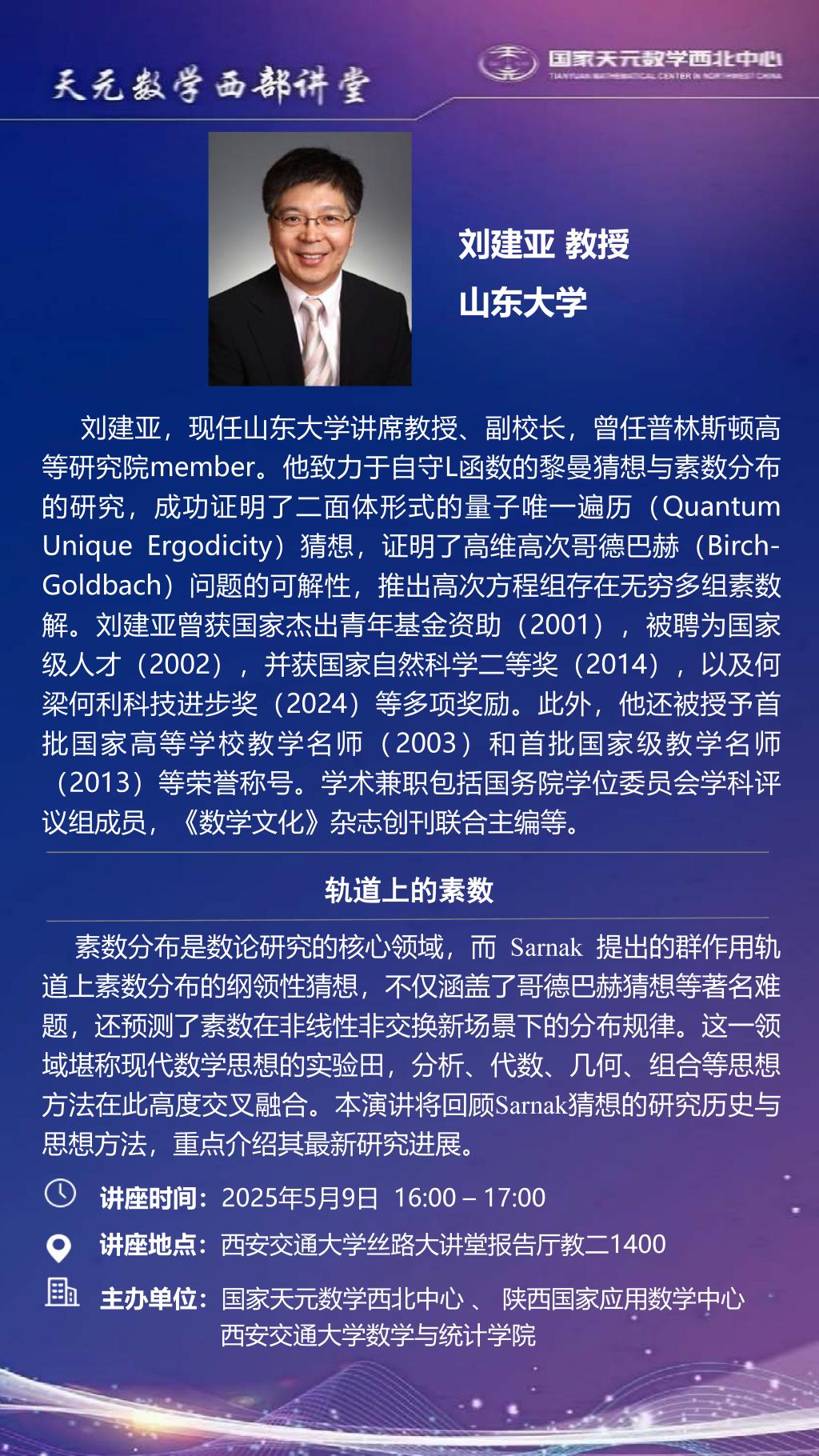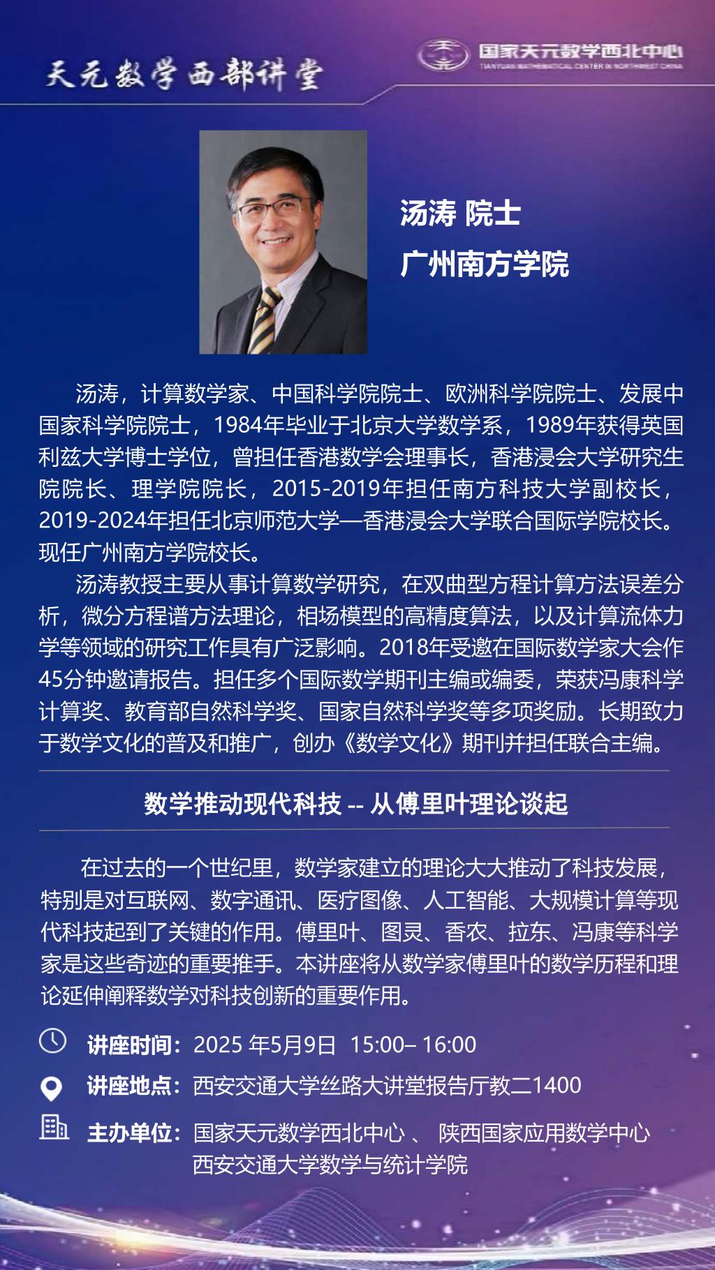 【天元数学西部讲堂】广州南方学院汤涛院士、山东大学刘建亚教授学术报告