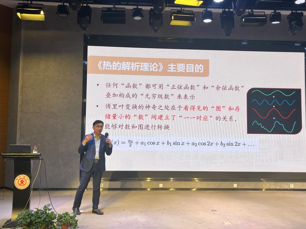 在报告中,汤涛院士以《数学推动现代科技——从傅里叶理论谈起》为题,深入浅出地讲述了数学如何在过去一个世纪中推动互联网、数字通信、医疗影像、人工智能与大规模计算等现代科技的发展。他通过傅里叶、图灵、香农等科学家的理论成就,生动展示了数学在技术革新中的核心作用,并强调了基础研究对国家科技发展的重要支撑意义。