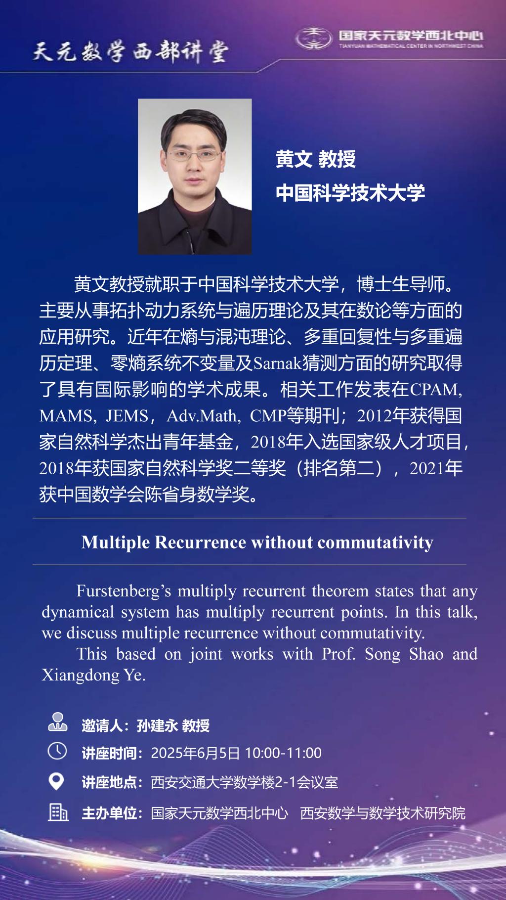 【天元数学西部讲堂】中国科学技术大学黄文教授学术报告
