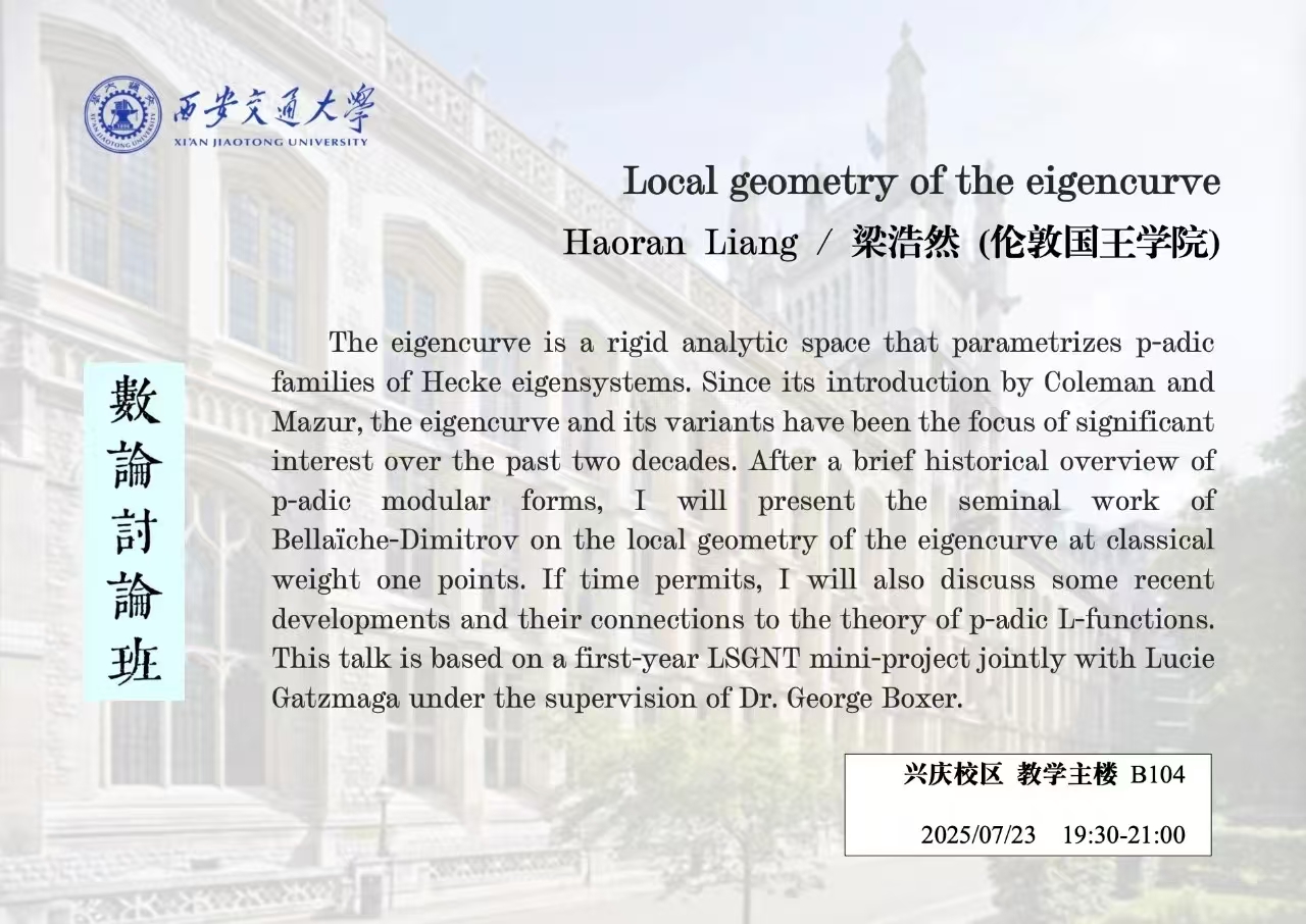 【数论讨论班】 伦敦国王学院梁浩然 (2025.07.23)