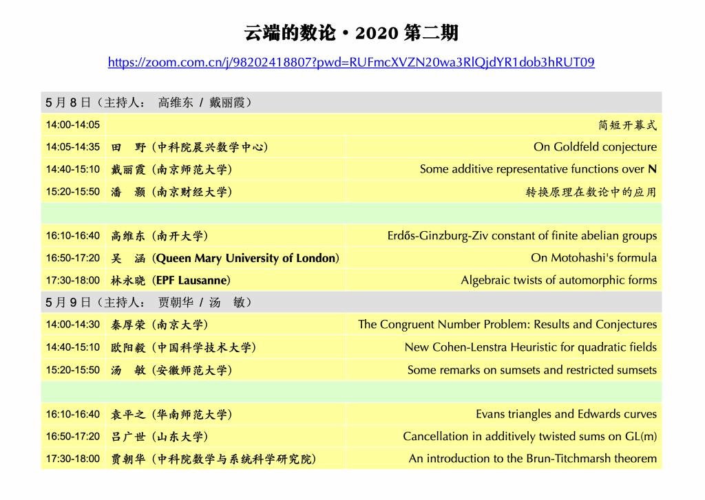 【数论系列活动20-02】云端的数论·2020第二期
