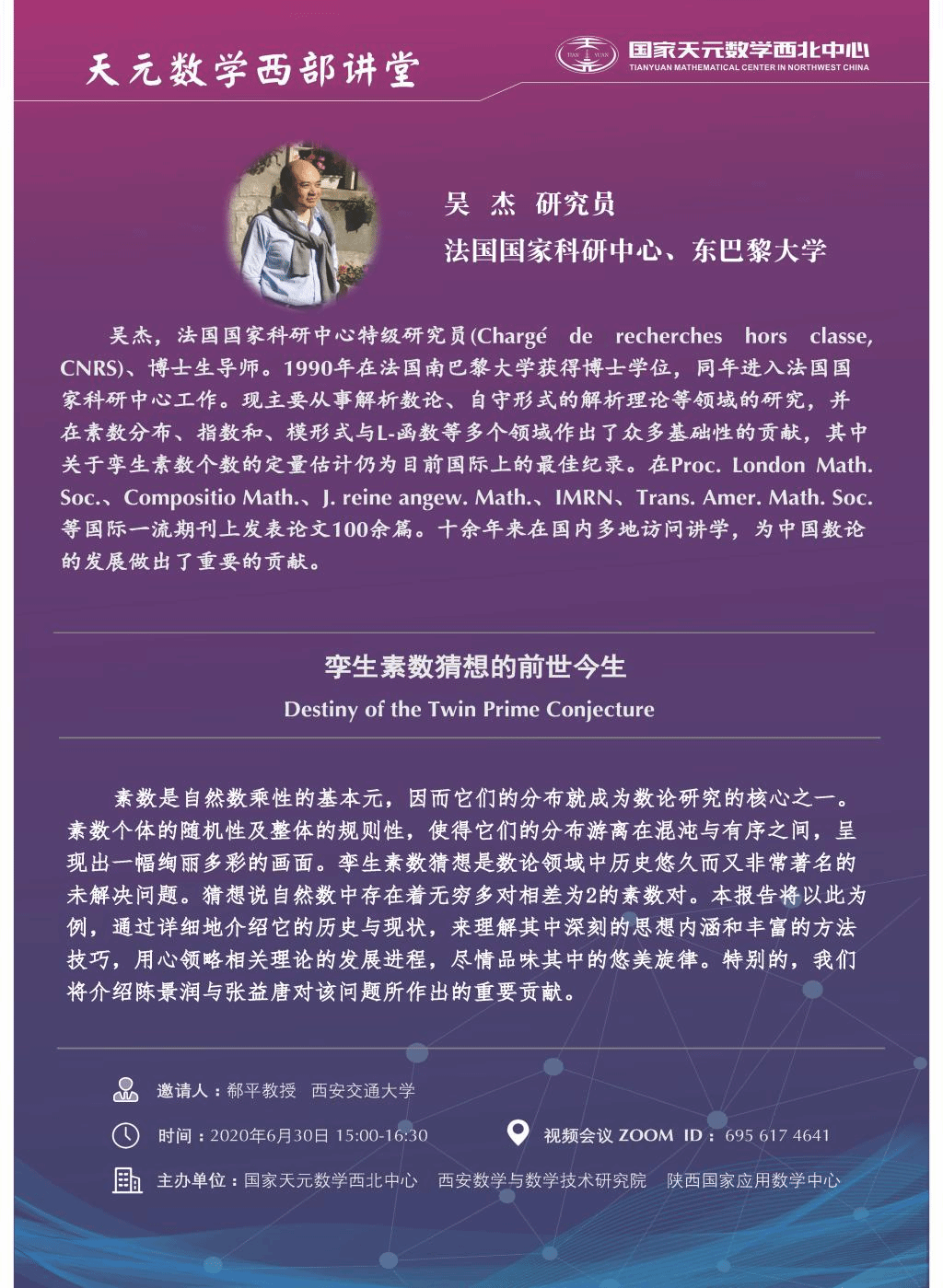 【天元数学西部讲堂】孪生素数猜想的前世今生(2020.06.30)